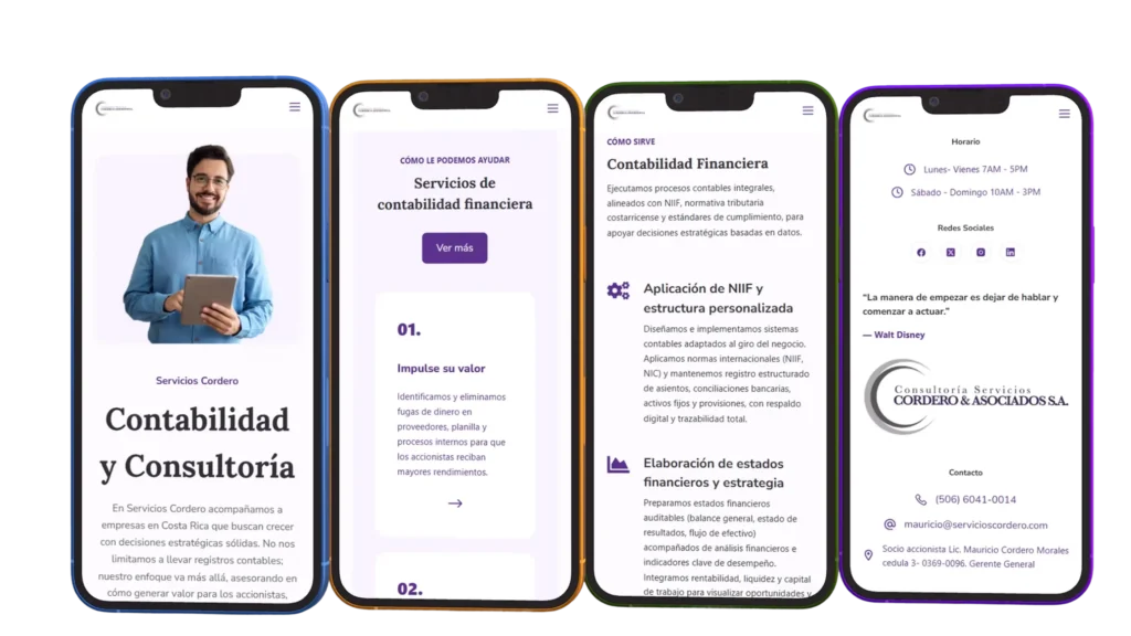 Tu negocio puede conseguir clientes incluso cuando no estás trabajando Asesoría gratis Ver servicios Tu sitio web puede atraer personas, explicar lo que haces y generar oportunidades todos los días… sin depender de tu tiempo. Atrae clientes sin estar pendiente todo el día Tu sitio aparece cuando alguien busca en Google y empieza a traerte oportunidades sin que tengas que estar respondiendo mensajes todo el tiempo Deja de explicar lo mismo una y otra vez Tu web muestra tus servicios, precios y propuesta de valor de forma clara para que el cliente llegue más preparado y listo para avanzar. Convierte visitas en mensajes o ventas Tus clientes pueden escribirte, agendar o comprar directamente desde el sitio, sin fricción. Recibe contactos incluso fuera de horario Mientras duermes o estás ocupado, tu sitio sigue trabajando por vos captando clientes interesados. Todo conectado en un solo lugar WhatsApp, formularios, mapas, redes… todo organizado para que el cliente no tenga que buscar cómo contactarte. Haz crecer tu negocio con publicidad digital Tu sitio se convierte en la base para campañas en Google y redes que te ponen frente a más personas listas para comprar. Ver servicios Tu sitio web puede convertirse en tu mejor vendedor Guía al cliente a tomar acción Tu sitio está pensado para que quien entra entienda rápido y sepa qué hacer. Funciona siempre, sin fallar Tu web está disponible, rápida y lista para recibir clientes en todo momento. Convierte interés en contacto real Integramos herramientas para que las visitas se conviertan en mensajes, citas o ventas. clientes vs sitio tradicional + 0 X conversión en sitios + 0 % más leads + 0 X de retorno en campañas + 0 % Lo que dicen nuestros clientes Empresas que confiaron en nosotros para fortalecer su presencia digital. Un canal de ventas disponible 24/7Un sitio web que permite mostrar servicios, productos y captar clientes en cualquier momento del día. Clínica estética Cliente Más clientes llegando al negocioUn sitio diseñado para explicar servicios y convertir visitas en contactos listos para avanzar. Consultoría empresarial Cliente Visibilidad para proyectos inmobiliariosUn espacio digital donde los clientes pueden conocer propiedades y generar interés de forma continua. Empresa inmobiliaria Cliente Si tu negocio no está generando clientes online, estás perdiendo oportunidades todos los días Hablemos y lo solucionamos